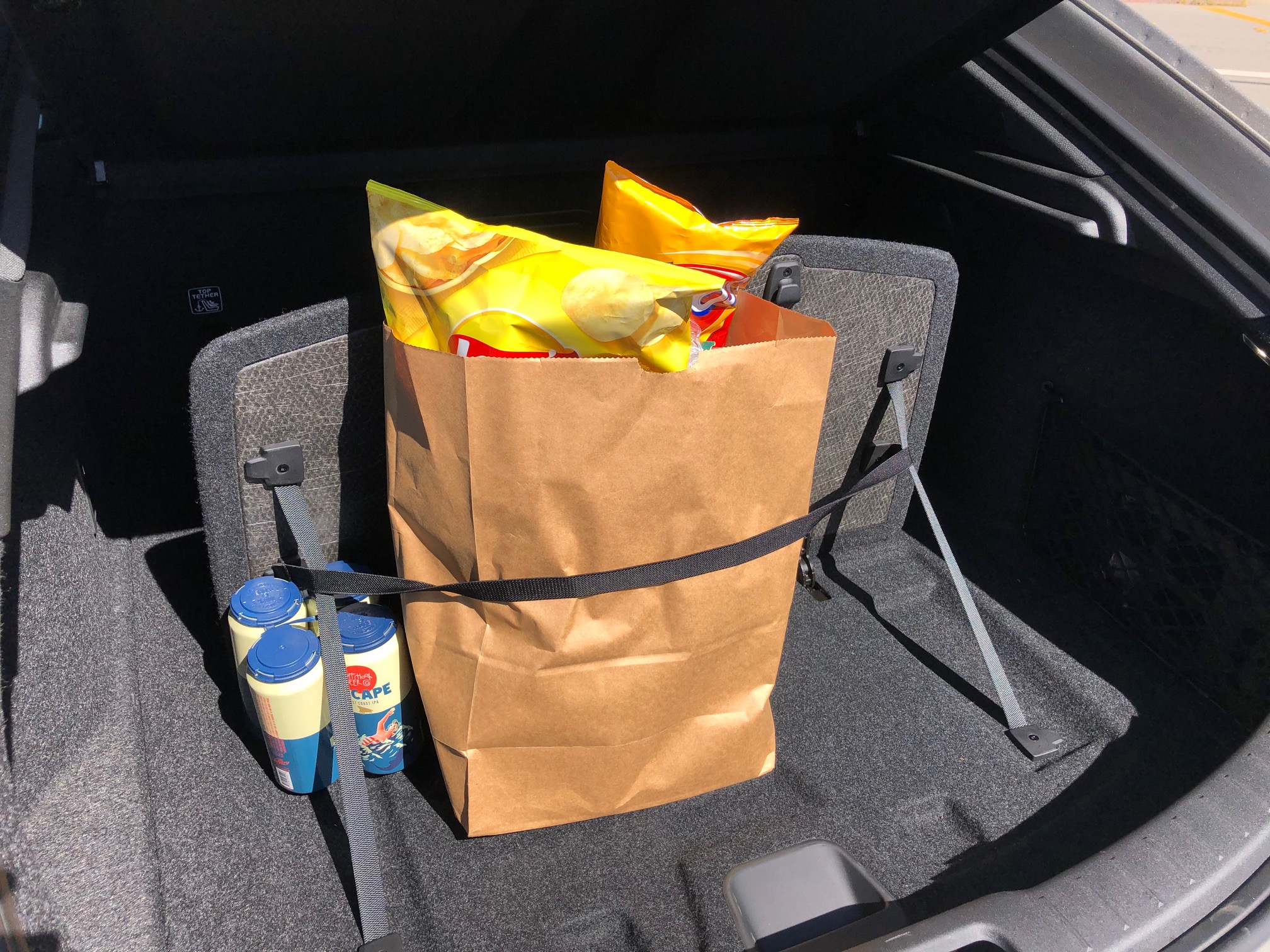 In a world obsessed with crossovers and SUVs, this is a car that looks like a tall sedan but actually provides hatchback practicality, including a fold-up panel for grocery bags that includes hooks and a strap.